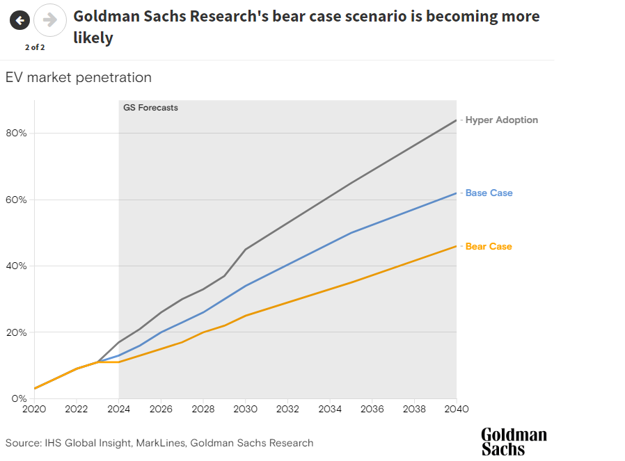 According to GS, their most bearish scenario for electric car sales this year is becoming more likely, which could imply a 2% drop compared to 2023.