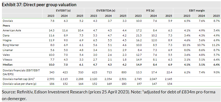 Taking the multiples of these companies, Dowlais should have been trading at a price of 268p, instead of the 130p it traded at then. But even considering the comparison with the rest of the non-premium sector companies, the valuation should have been 168p per share.