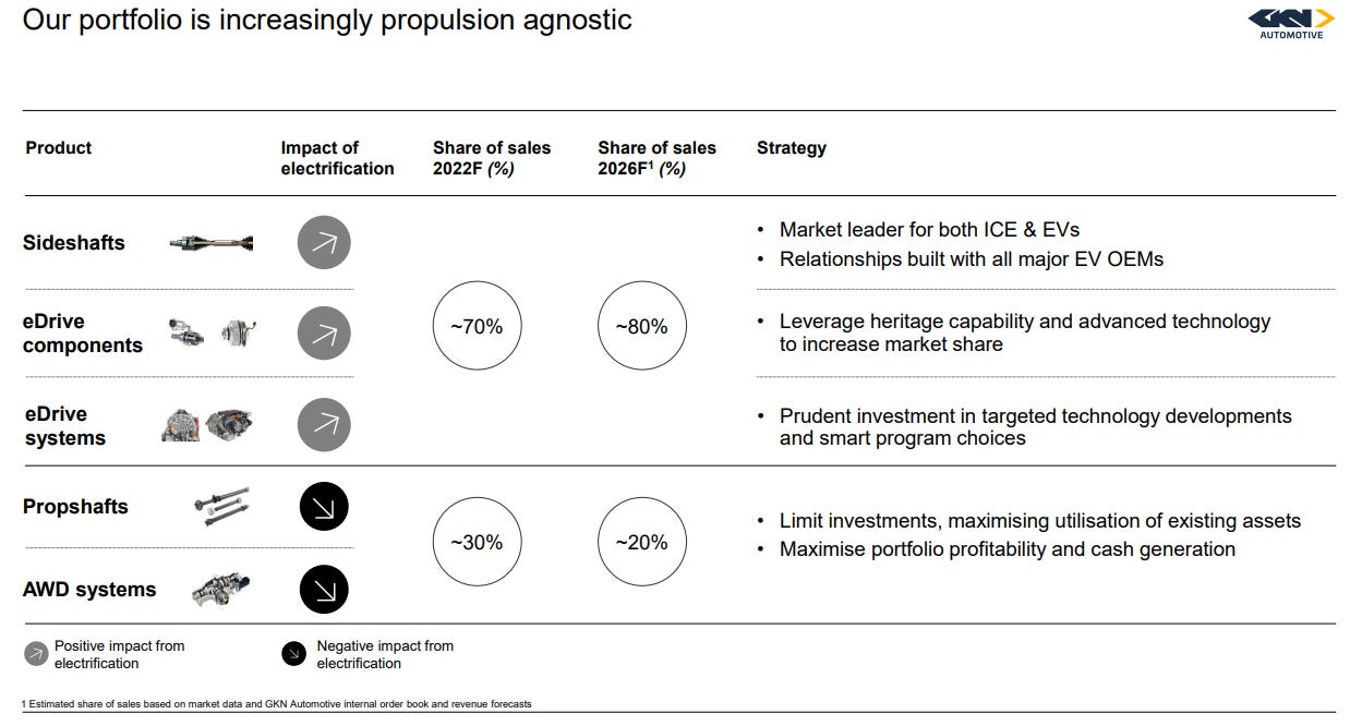 Management forecasts include increasing the share of sales in sideshafts and other traction systems adapted for electric motors while squeezing the rest of the business associated with gasoline and diesel engines.