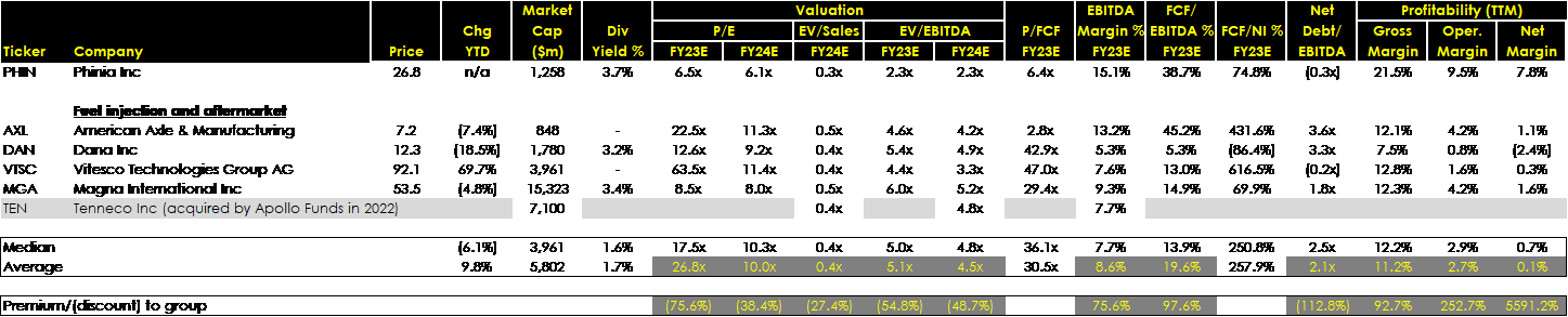 PHINIA’s competitors—including American Axle & Manufacturing, Dana, Magna, Vitesco Technologies (recently the subject of a takeover offer from Schaeffler with a premium of approximately 25% at the time of the announcement), and Tenneco—trade at a 5.0x EV/EBITDA multiple. This is significantly higher than PHINIA’s 3.5x multiple, despite PHINIA having a considerably higher EBITDA margin, better cash flow conversion, and lower leverage.